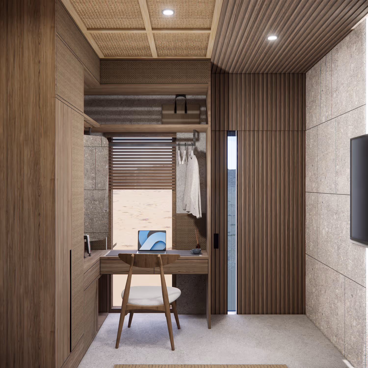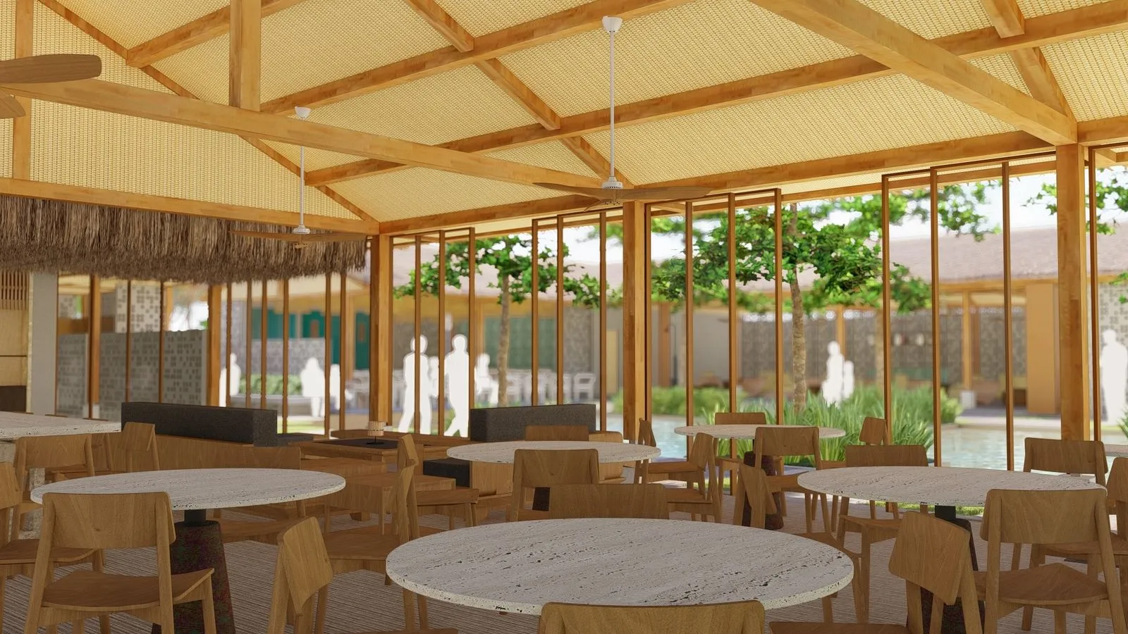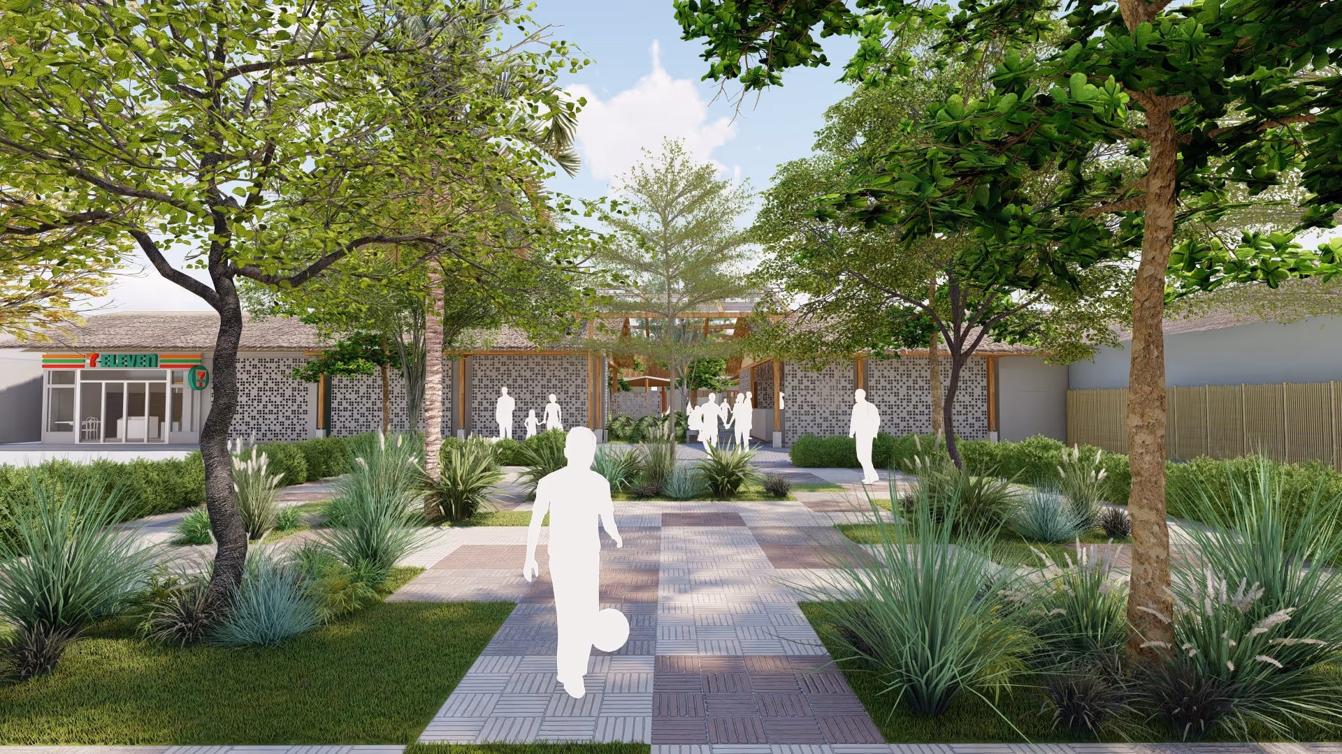 The public park was added to the plan to give back to the community, as the client wanted the resort to become a social space for locals and tourists. The front structure, which houses the main lobby, restaurant, spa, and main pool, features intricate brick walls that resemble a local weave pattern to provide privacy and security. By the end of the lot, the two-storey boutique villas are a configuration of container vans that create an aerial pattern that cascades on site. The alternating shift in containers offers hotel users private views of surrounding gardens.