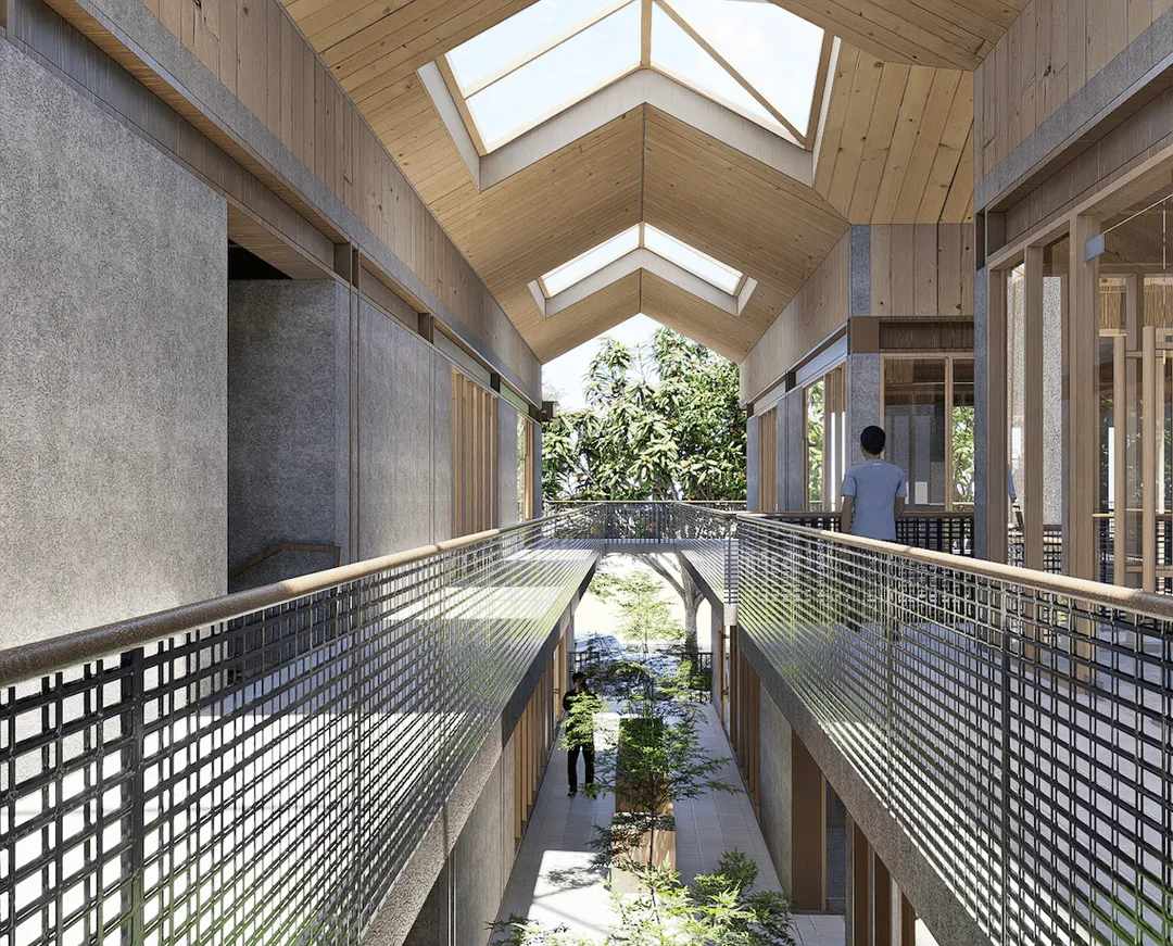 Located in a bustling tourist area in Antipolo, the project is a commercial center that is rooted in community, nature, and its context. The main concept for the structure was for it to become a third space - to provide the users (locals and tourists) a small village where community and economic activities meet. The site itself is a sloping lot with several fully-grown trees of different species that are preserved to become a focal point for the views of the commercial units. As the user experiences the different parts of the building, they are always greeted by a view of the site’s various trees. The common spaces of the structure allow the people to be closer to the natural landscape, as outdoor seating is designed into these.