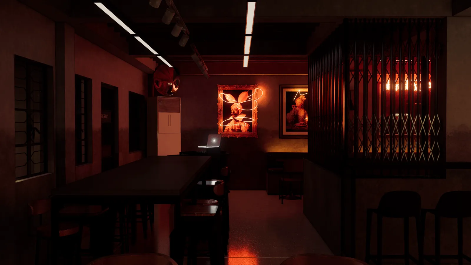 The streets of España in Manila are more recently becoming known to be home to several local cafe and bar scenes. The project is strategically located in one of these popular streets. The design challenge lies in its program; being both a cafe and bar. The space needed to foster an environment where users could relax and stay for work or study sessions during the day, but also host gatherings and parties in the evening. The design needed to help facilitate the seamless transition from day to night, as the operating hours would transition without closing in between. Elements that would be flexible aesthetically were chosen for this, such as an industrialist look with mismatched or vintage furniture. Existing details, such as an Art Deco-style barrier on the windows, and wood plank ceilings were preserved and integrated into the walls and bar counter to root the design into its past context. The layout of the furniture and booth seating is also designed to be conducive to both studying and after-school lounging. At night, a warm glow envelopes the bar with the neon lights that are hidden in plain sight on the various paintings and signages in the space, which literally ‘flips the switch’ from day-to-night and cafe to bar.